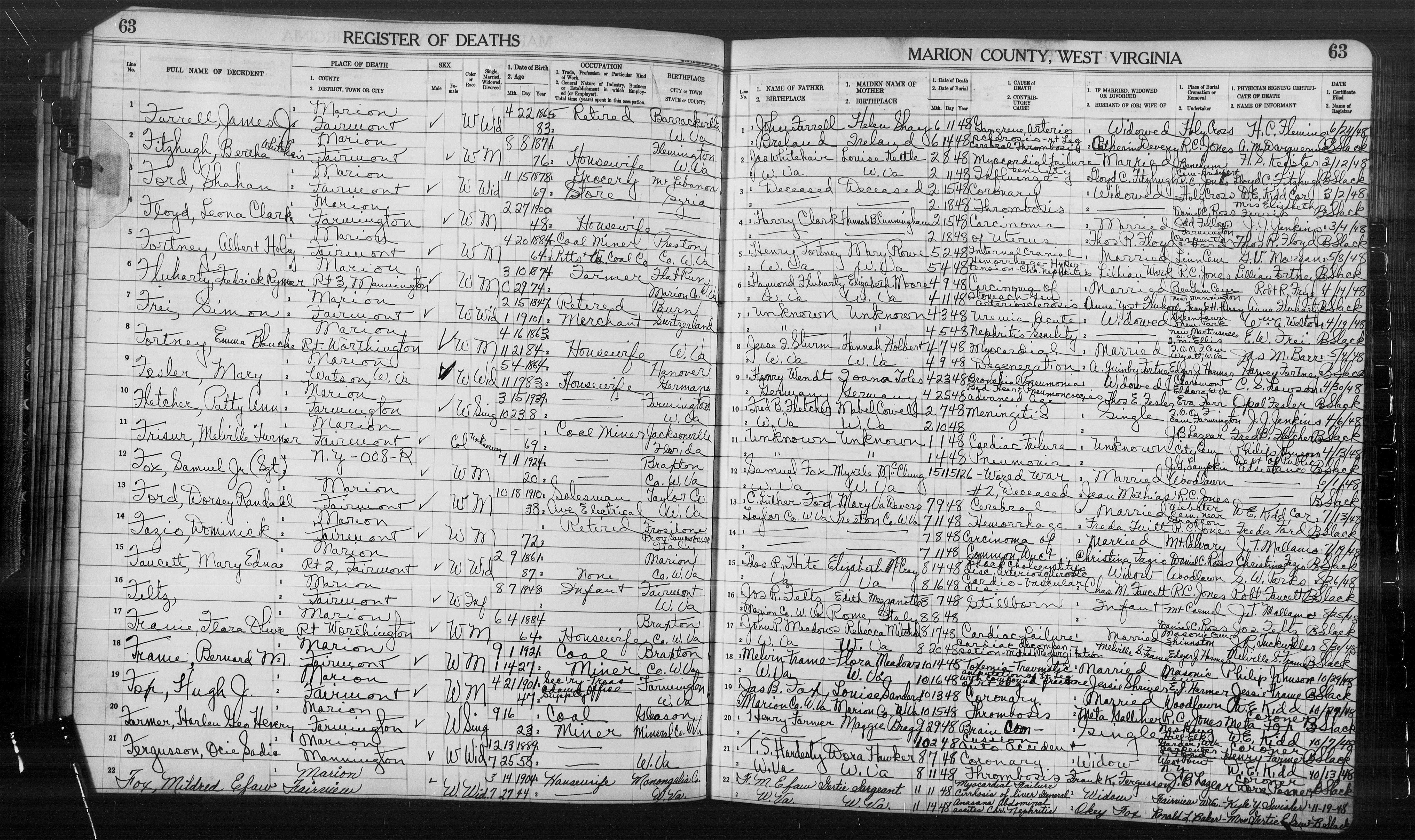 - West Virginia Death Certificate: Sgt Samuel Fox, Jr