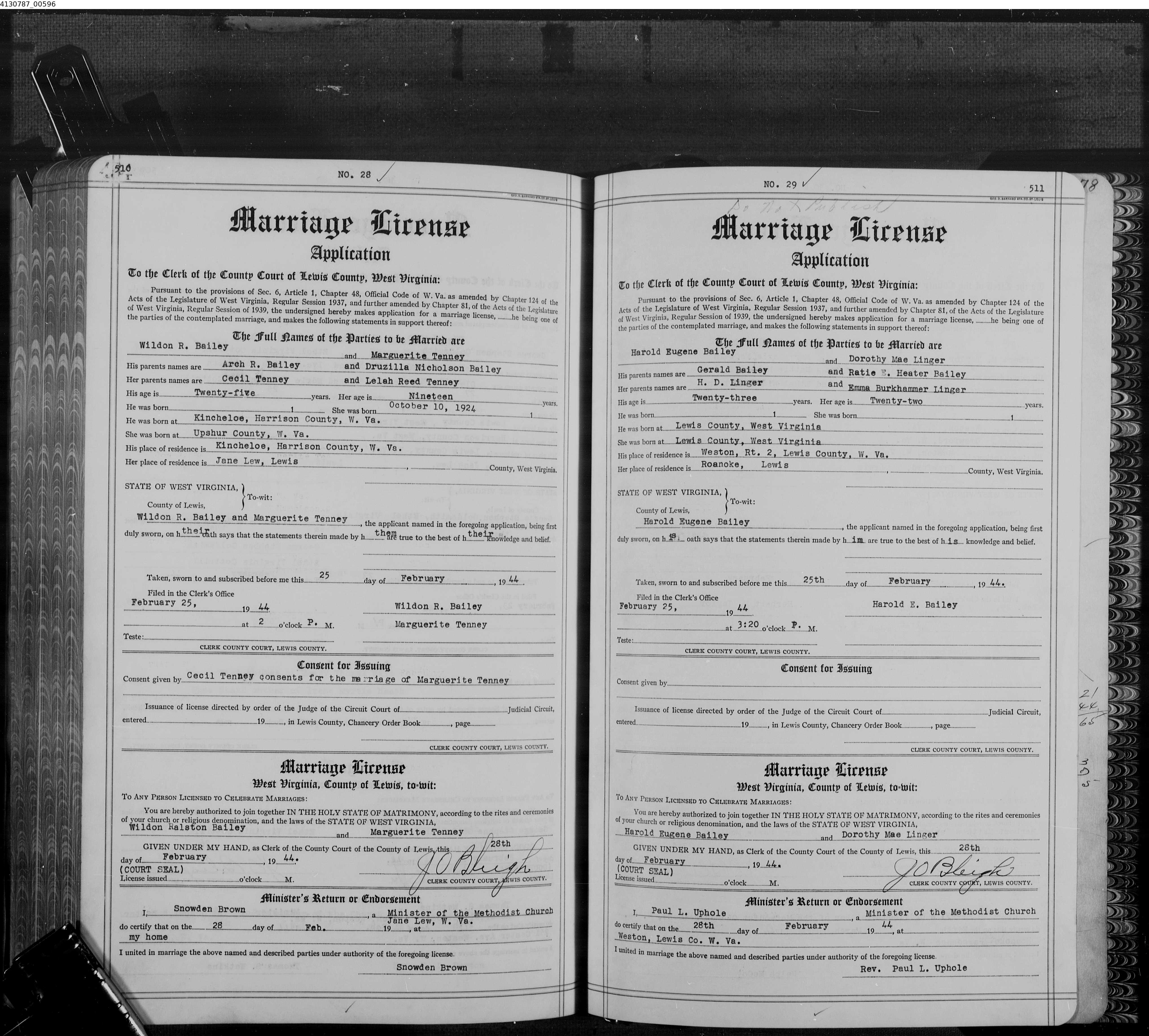 - WV Marriage License: Wildon R. Bailey and Marguerite Tenney