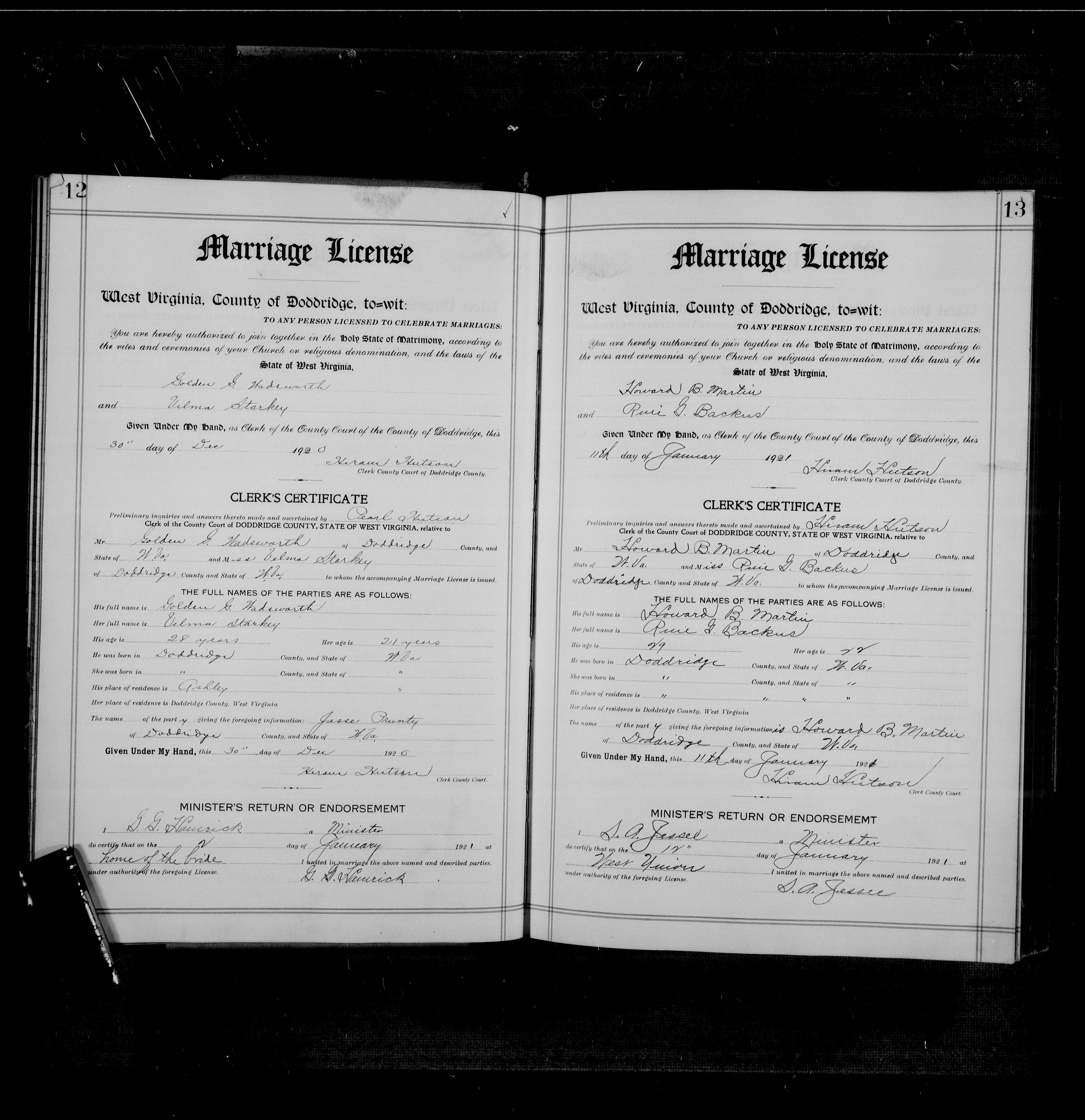 - WV Marriage License: Golden Gordon Wadsworth and Velma May Starkey