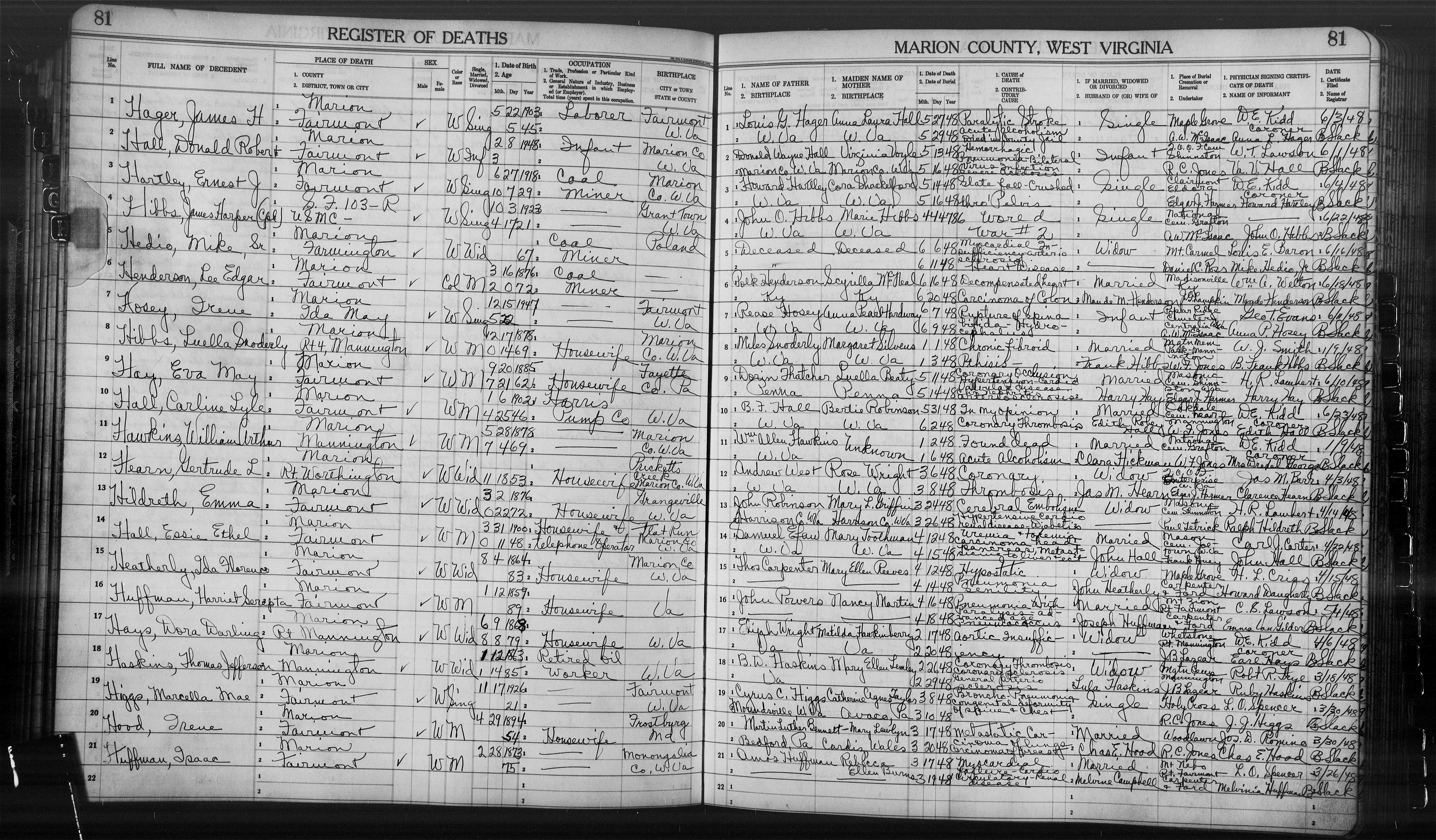 - West Virginia Death Record: